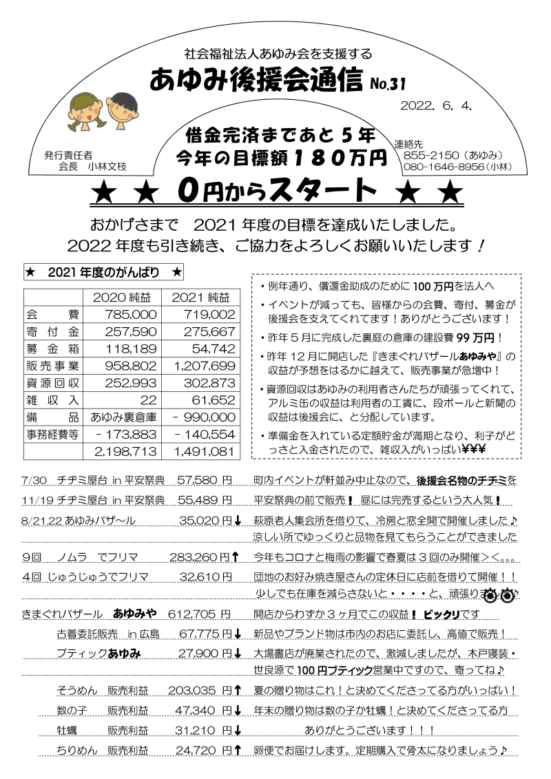 あゆみ後援会通信 No.30(2021年6月)New! |