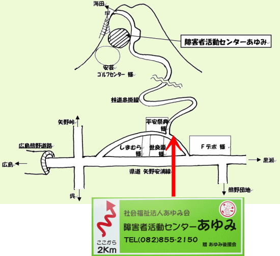所在地・交通アクセス(地図)ーあゆみ(社会福祉法人あゆみ会)広島県安芸郡熊野町