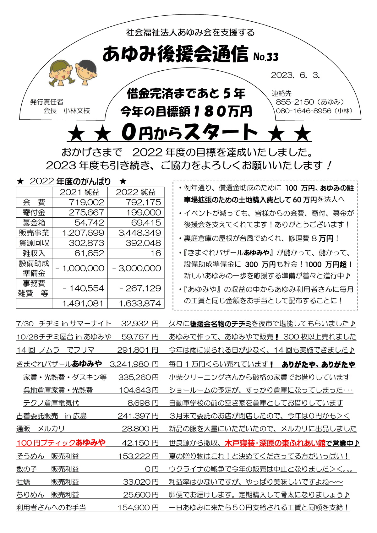 あゆみ後援会通信 No.33 2023年6月3日 |