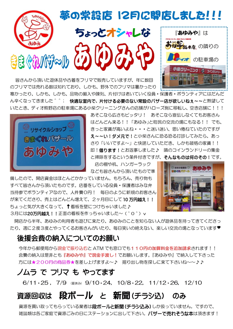 あゆみ後援会通信 No.31/夢の常設店12月に開店しました!! |