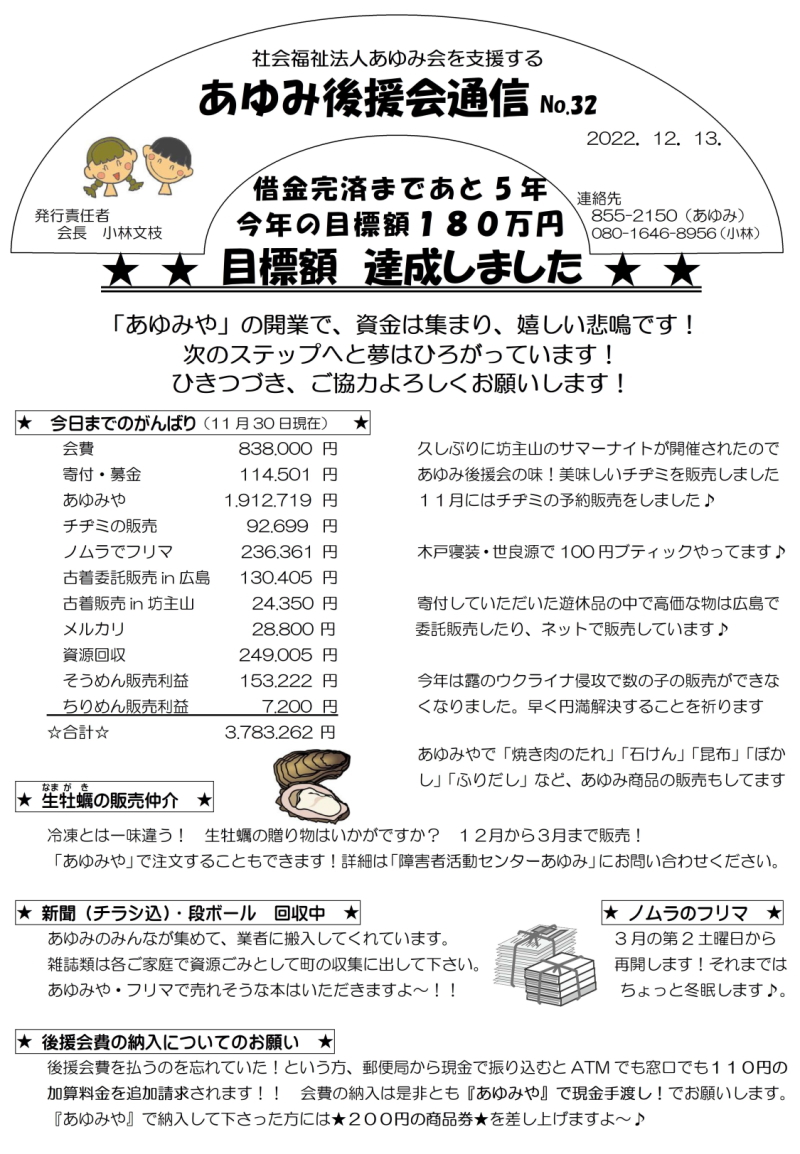 あゆみ後援会通信 No.32 2022年12月13日 |