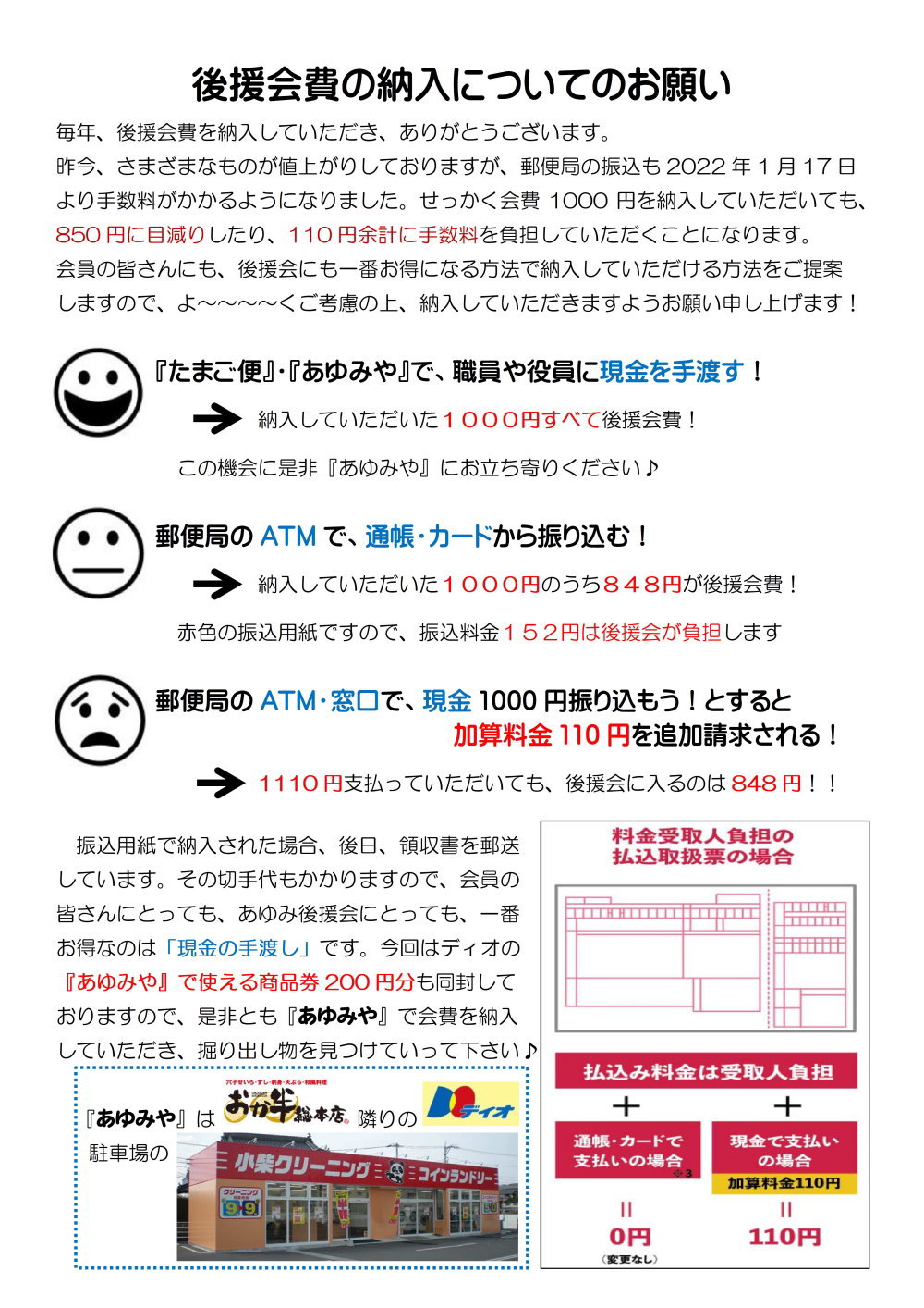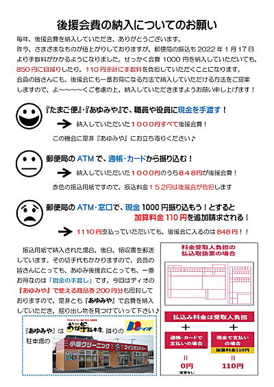 振込み手数料(80円)は後援会が負担します。