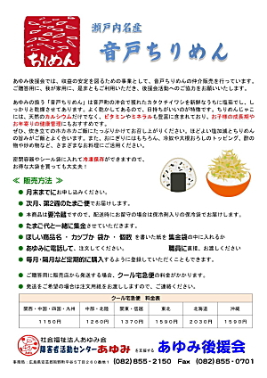 あゆみ後援会では、収益の安定を図るための事業として、音戸ちりめんの仲介販売を行っています。ご贈答用に、我が家用に、是非ともご利用いただき、後援会活動へのご協力をお願いいたします。