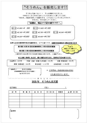 そうめんの販売は終了しました。